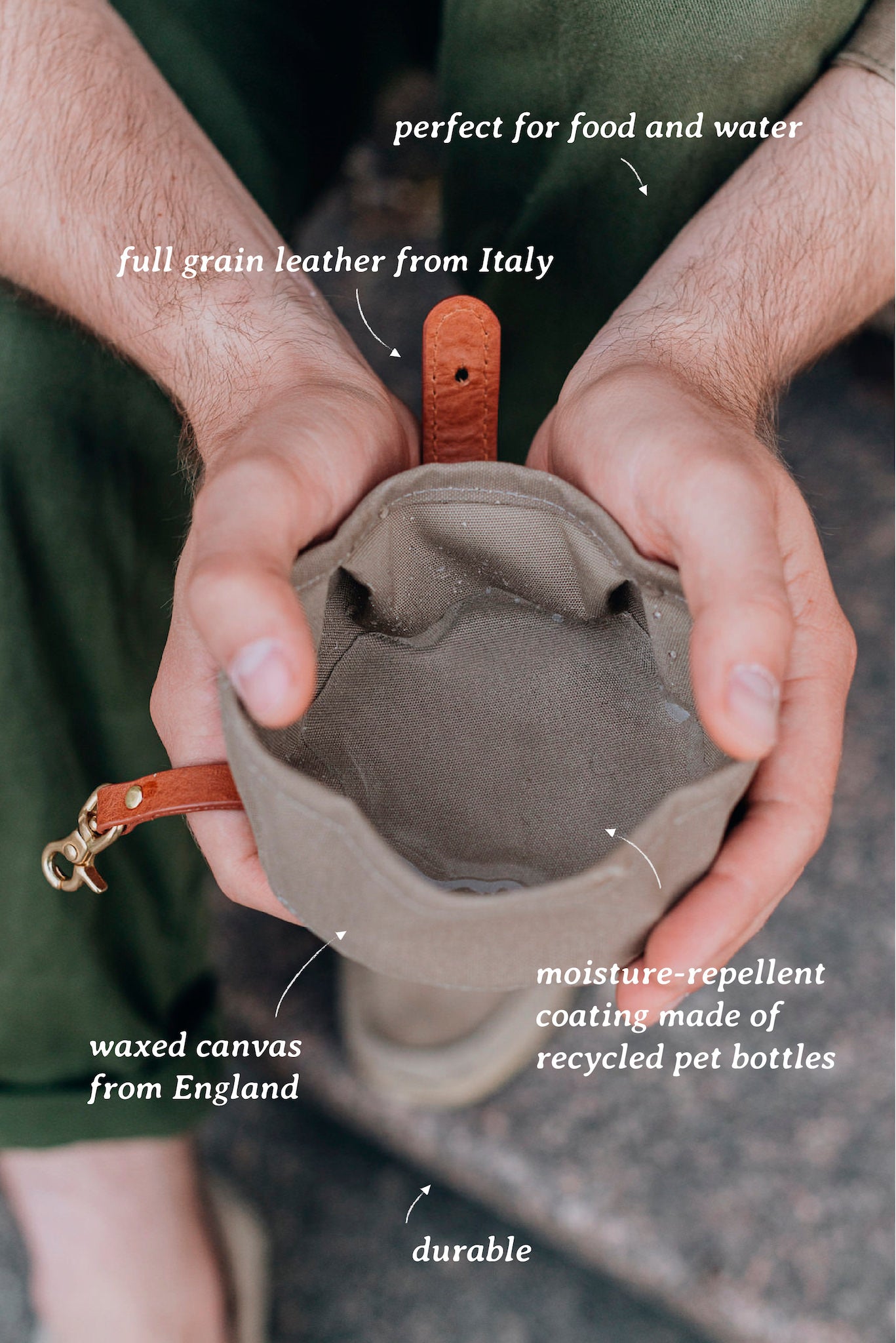 When thirst strikes on the go, MELO is there. Lightweight and compact, it’s the perfect companion for your furry friend’s adventures. Crafted from waxed canvas that resists moisture, it wipes clean and folds away, ready for the next journey.
